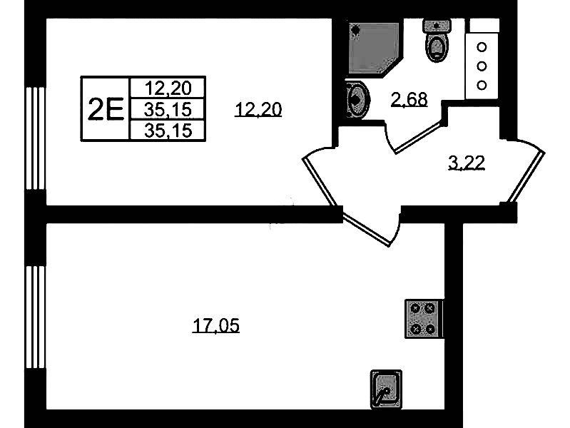 Однокомнатная квартира на 5-ом этаже 35,15 кв.м