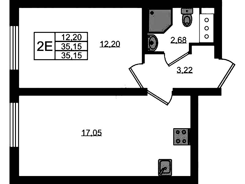 Однокомнатная квартира на 5-ом этаже 35,15 кв.м