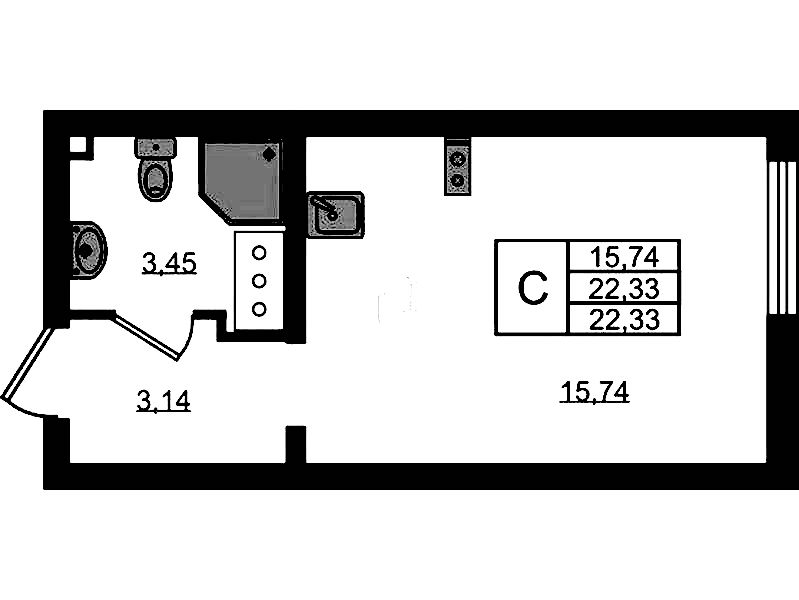 - Площадь22,33 м2