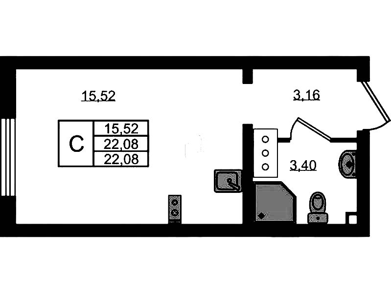 - Площадь22,08 м2