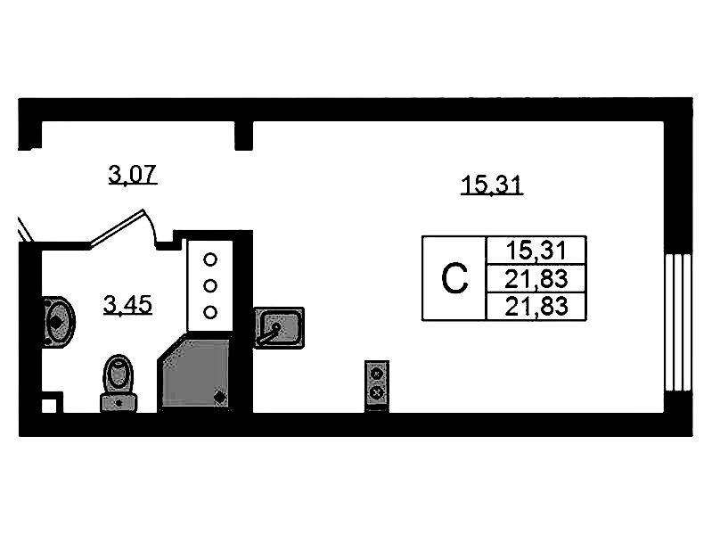 - Площадь21,83 м2