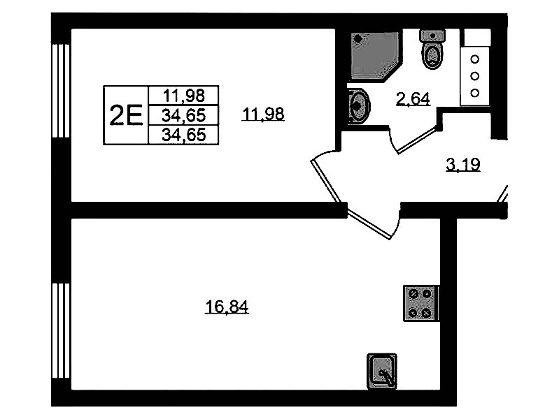 - Площадь34,65 м2