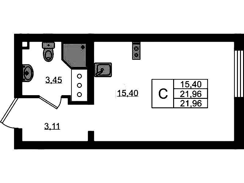 Квартира-студия на 16-ом этаже 21,96 кв.м