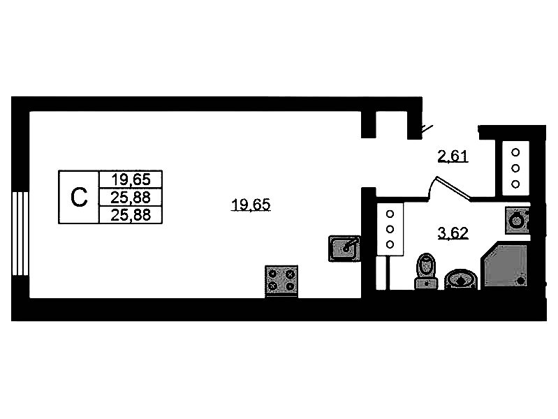 Квартира-студия на 16-ом этаже 25,88 кв.м