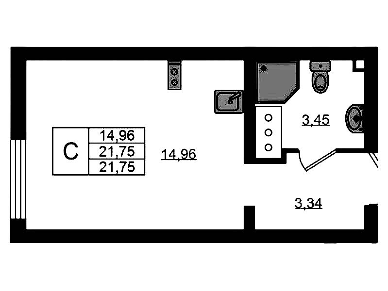 Квартира-студия на 18-ом этаже 21,75 кв.м
