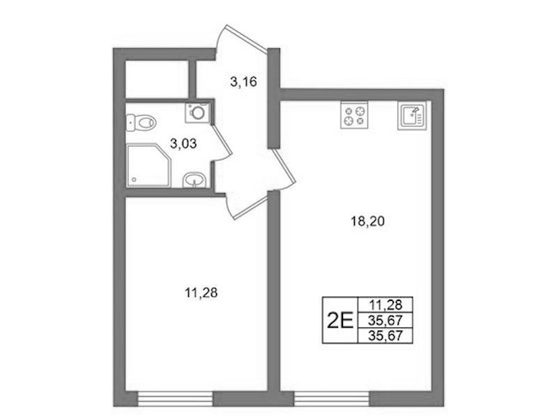 Однокомнатная квартира на 2-ом этаже 35,67 кв.м