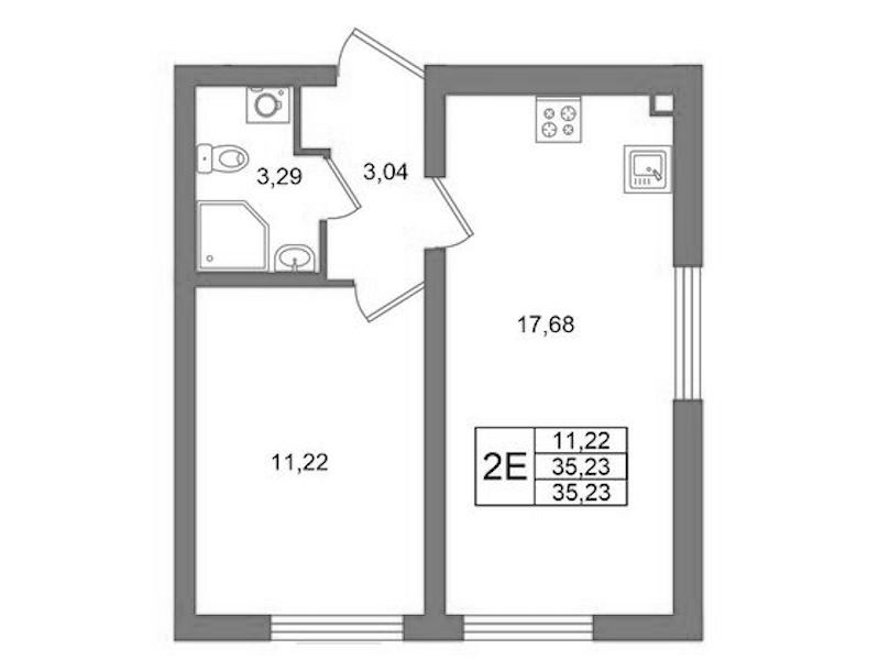 Однокомнатная квартира на 7-ом этаже 35,23 кв.м