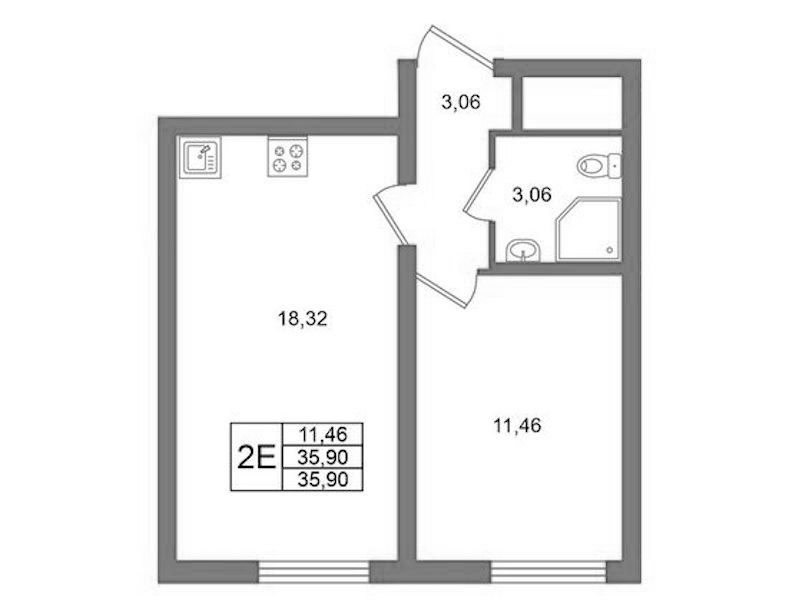 Однокомнатная квартира на 6-ом этаже 35,9 кв.м