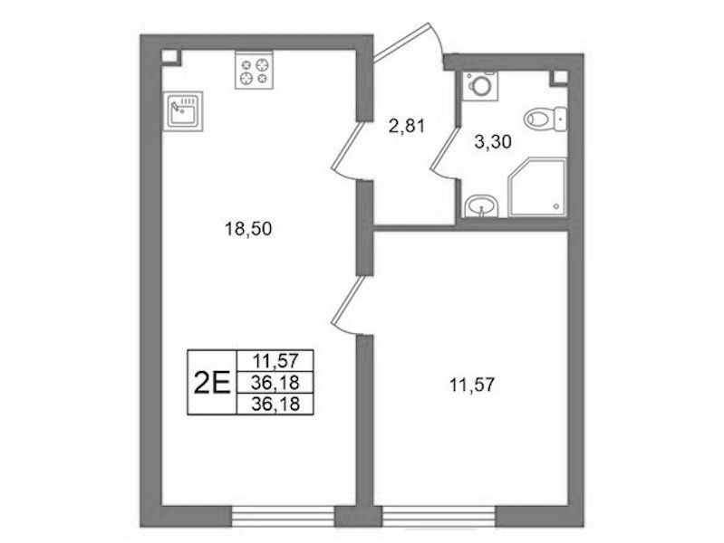 Однокомнатная квартира на 6-ом этаже 36,18 кв.м
