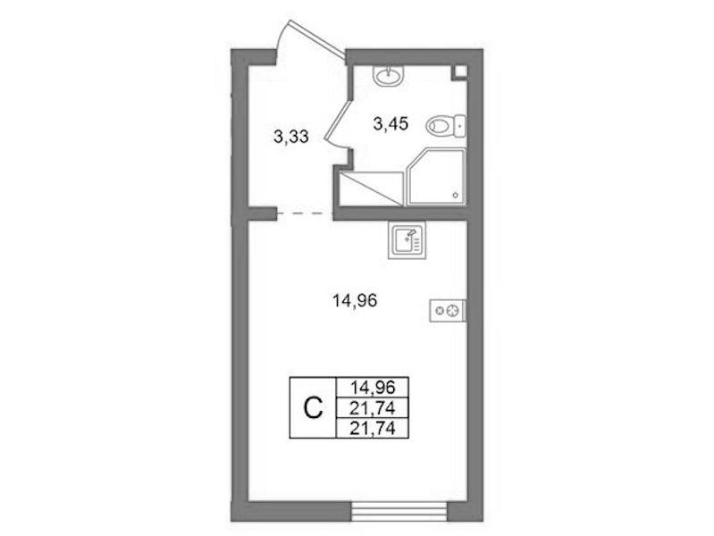 Квартира-студия на 8-ом этаже 21,74 кв.м