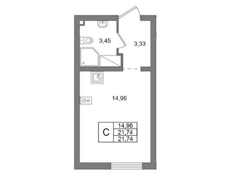 - Площадь21,74 м2