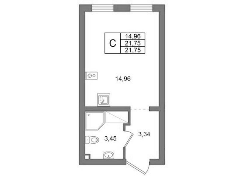 Квартира-студия на 7-ом этаже 21,75 кв.м