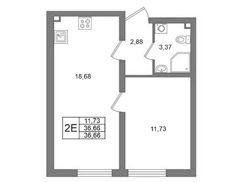 Однокомнатная квартира на 11-ом этаже 36,66 кв.м
