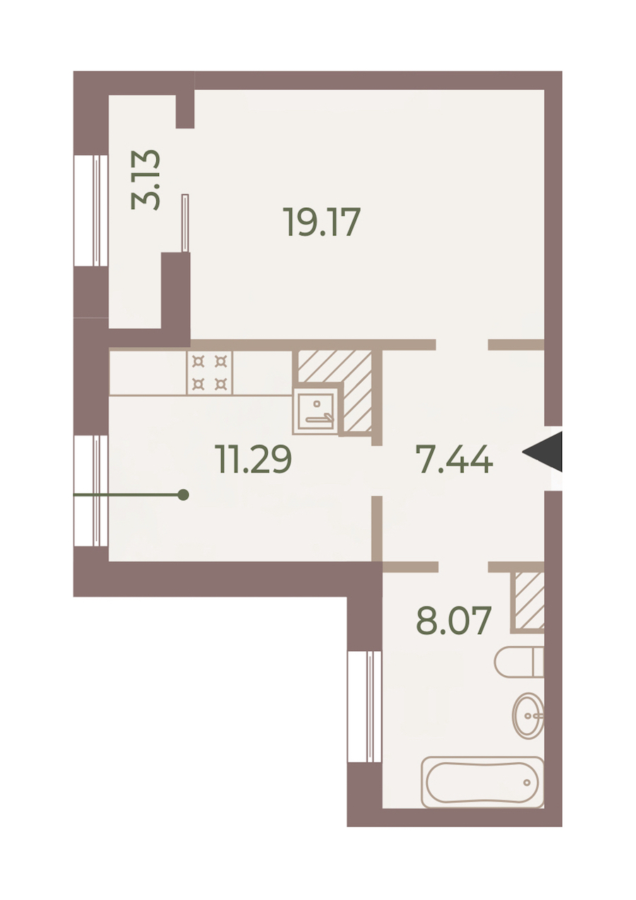 - Площадь кухни11,29 м2