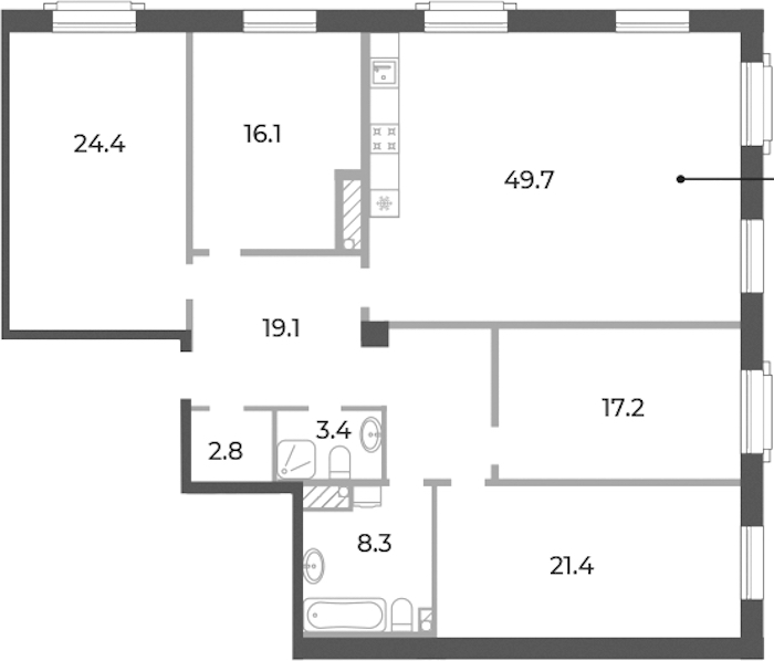 - Площадь кухни49,7 м2