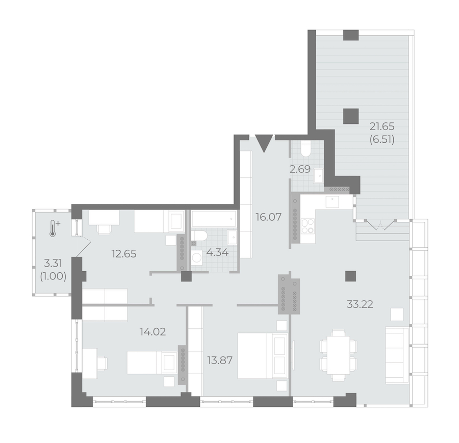 - Площадь кухни33,22 м2