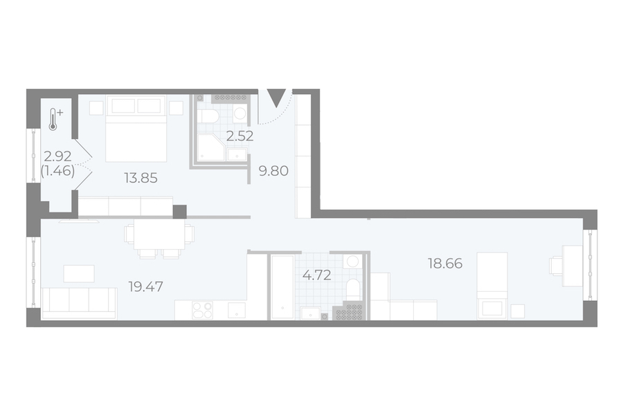 - Площадь кухни19,47 м2