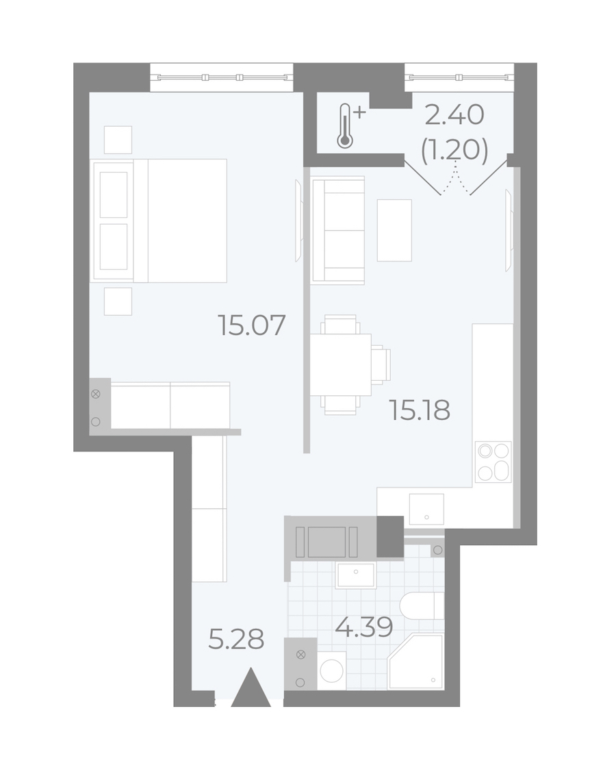 - Площадь кухни15,18 м2