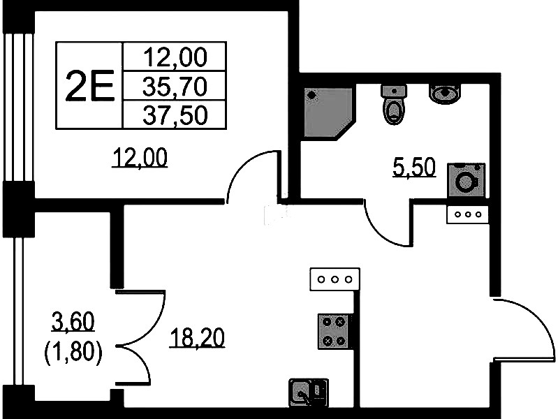 - Площадь37,5 м2