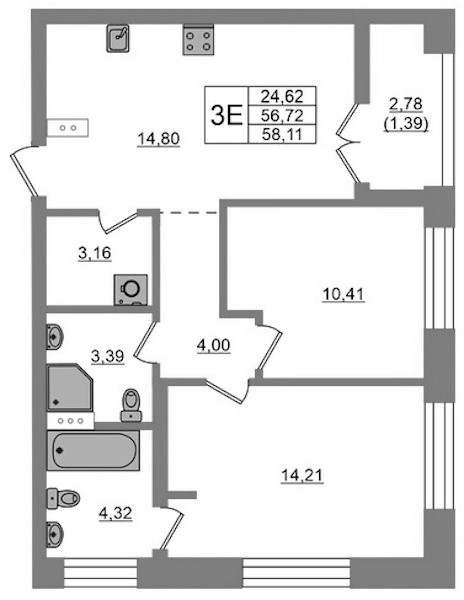 - Площадь58,11 м2