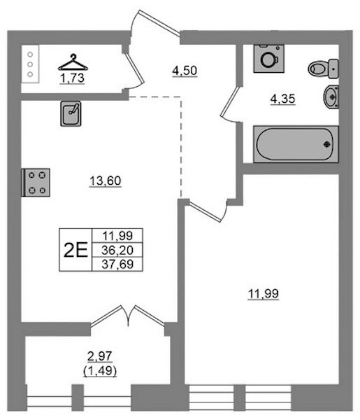 - Площадь37,69 м2