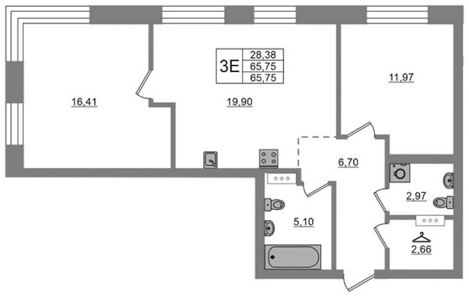 - Площадь65,75 м2
