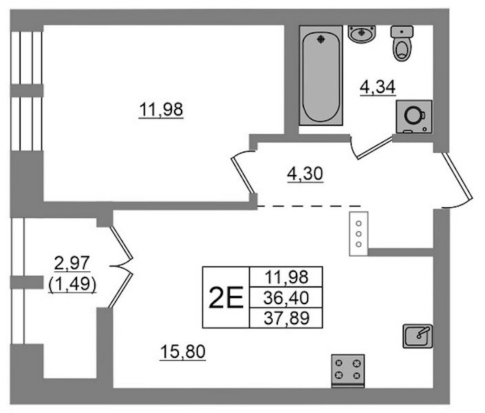 - Площадь37,89 м2