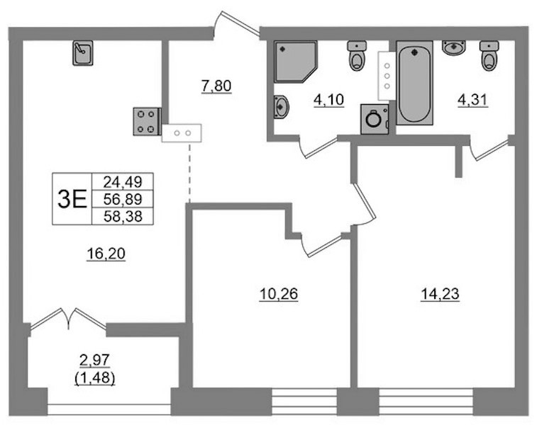 • Площадь58,38 м2