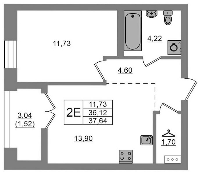 - Площадь37,64 м2