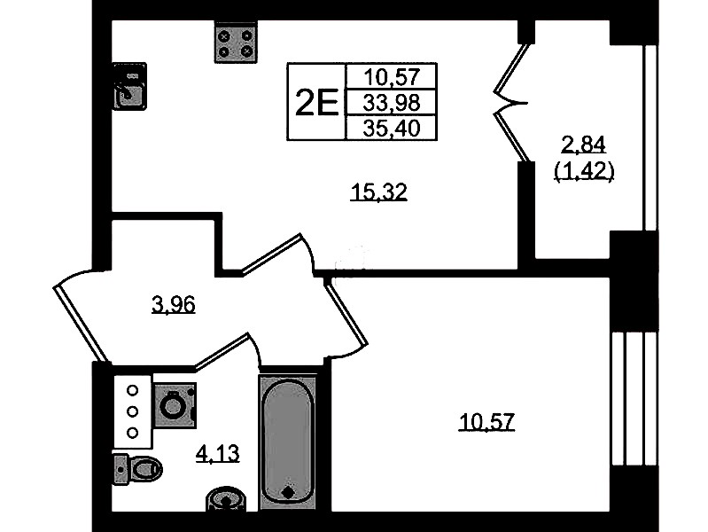 Однокомнатная квартира на 9-ом этаже 35,4 кв.м
