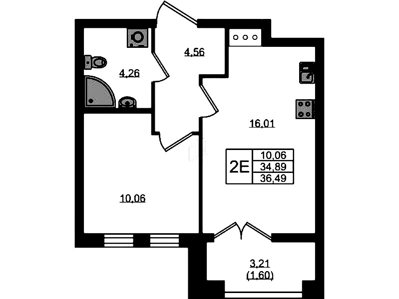 - Площадь36,49 м2