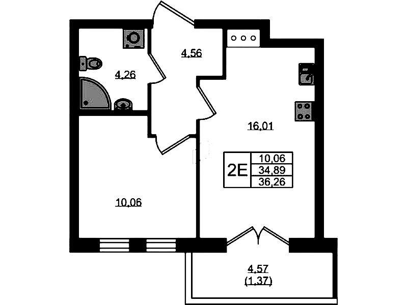 Однокомнатная квартира на 9-ом этаже 36,26 кв.м