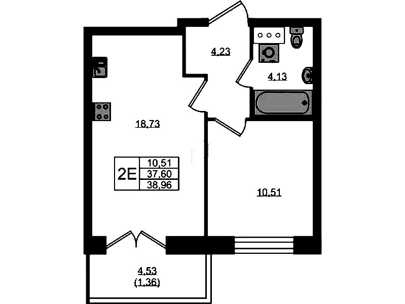 - Площадь38,96 м2