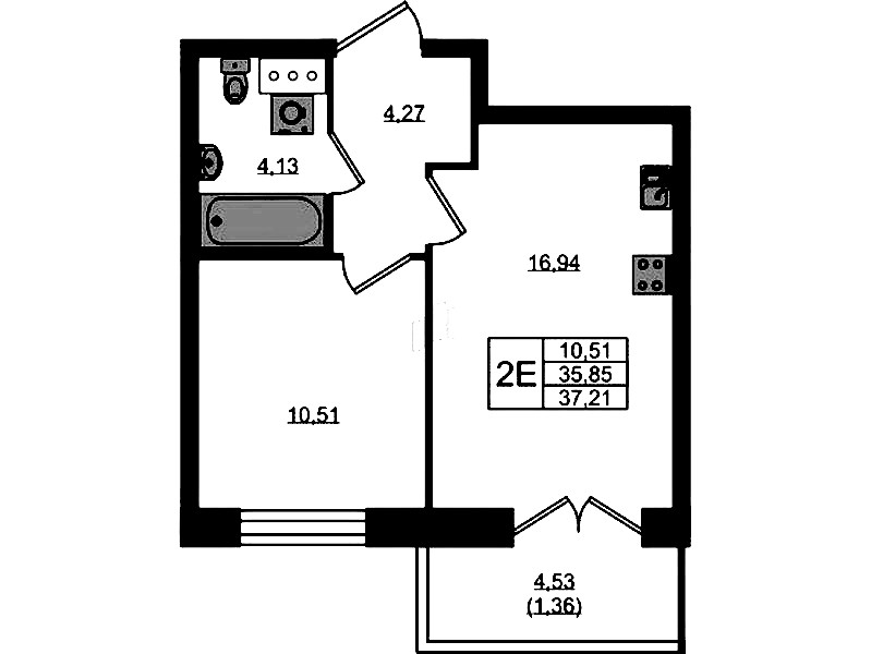- Площадь37,21 м2