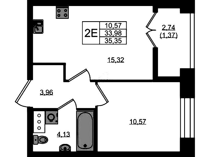 Однокомнатная квартира на 7-ом этаже 35,35 кв.м
