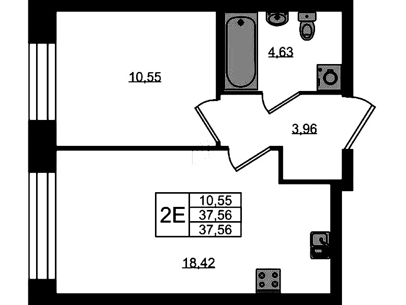 Однокомнатная квартира на 2-ом этаже 37,56 кв.м