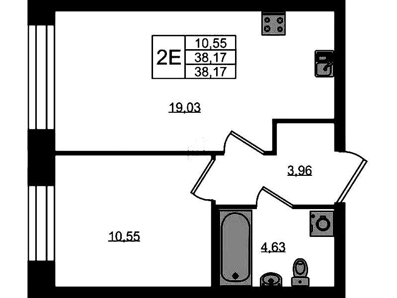 Однокомнатная квартира на 2-ом этаже 38,17 кв.м