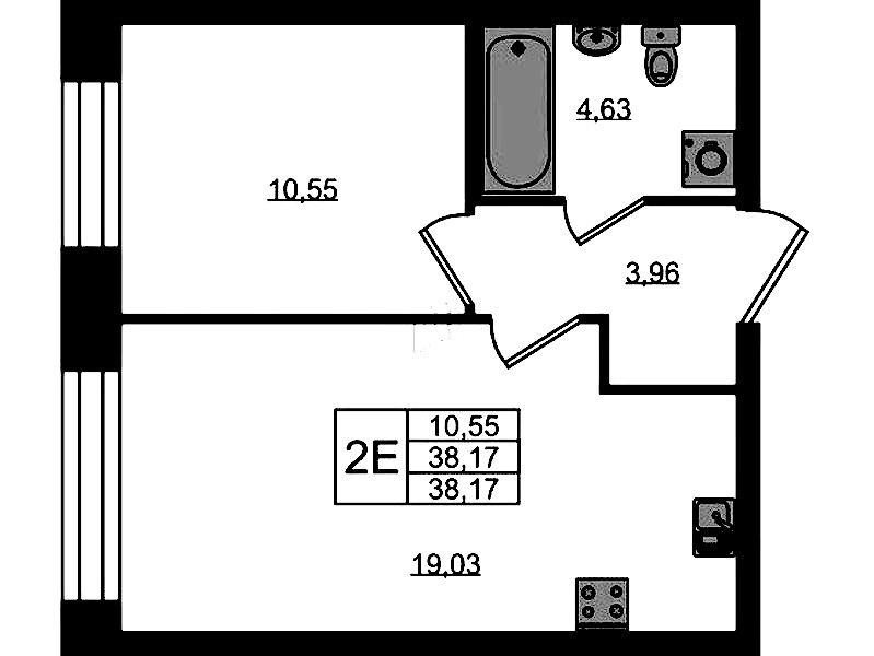 Однокомнатная квартира на 2-ом этаже 38,17 кв.м