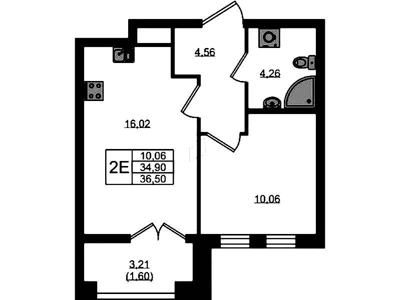 Однокомнатная квартира на 2-ом этаже 36,5 кв.м