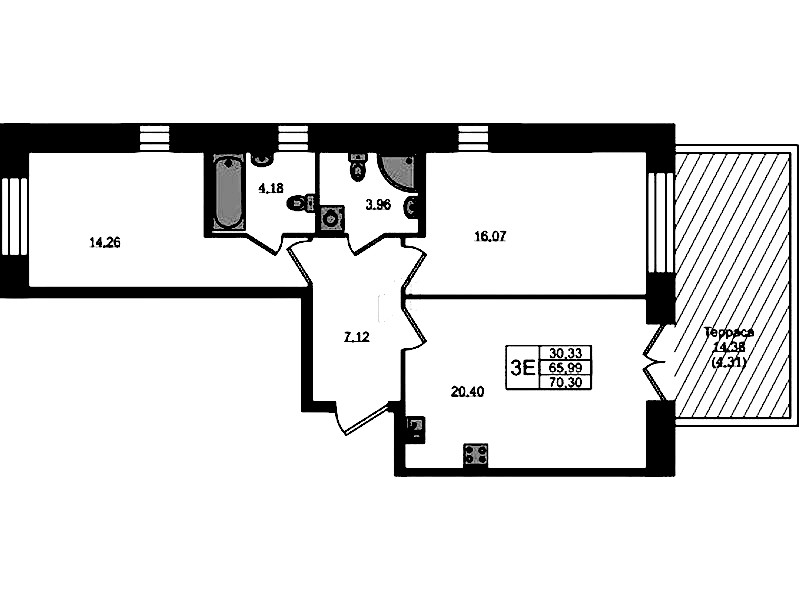 Двухкомнатная квартира на 2-ом этаже 70,3 кв.м