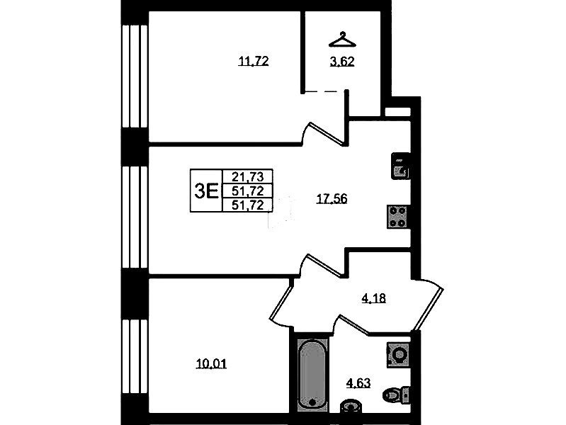 • Площадь51,72 м2