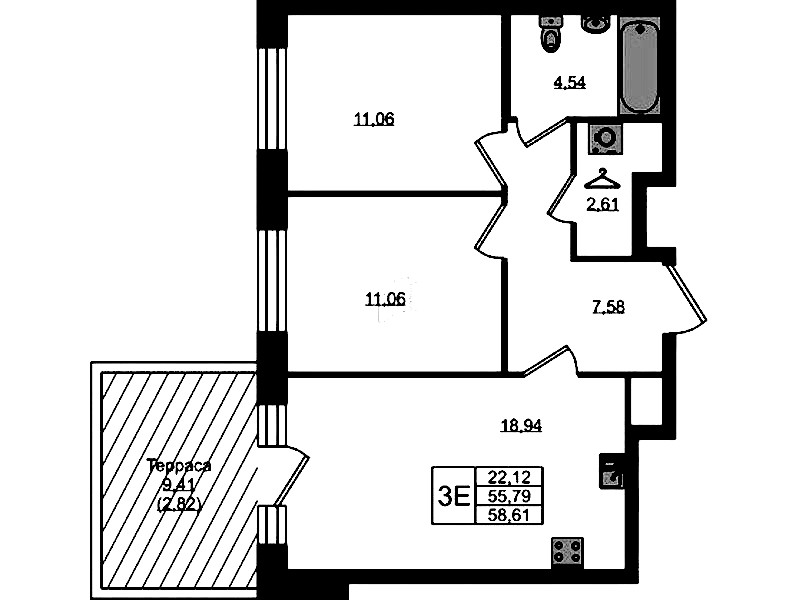 • Площадь58,61 м2