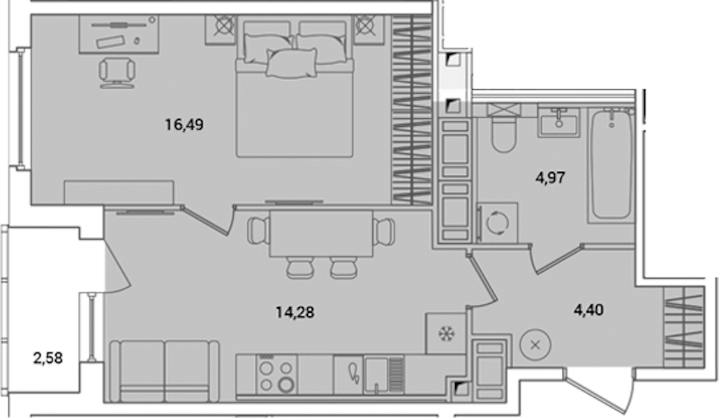- Площадь41,43 м2