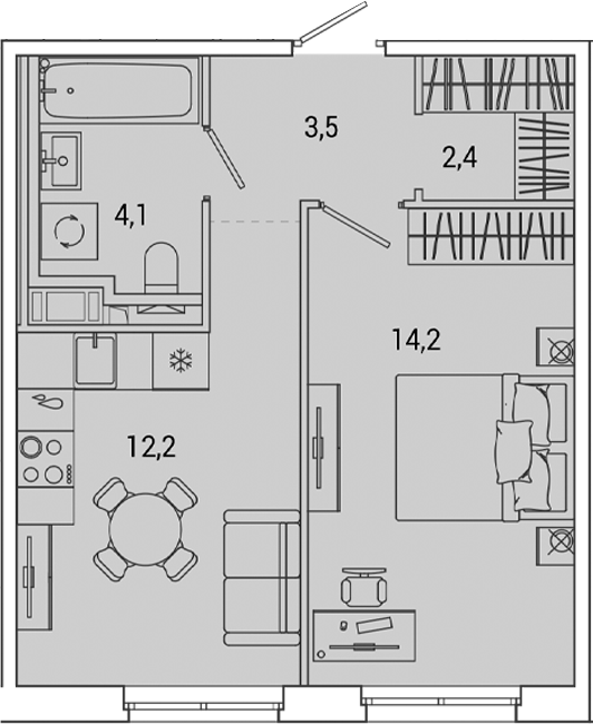 - Площадь кухни12,2 м2
