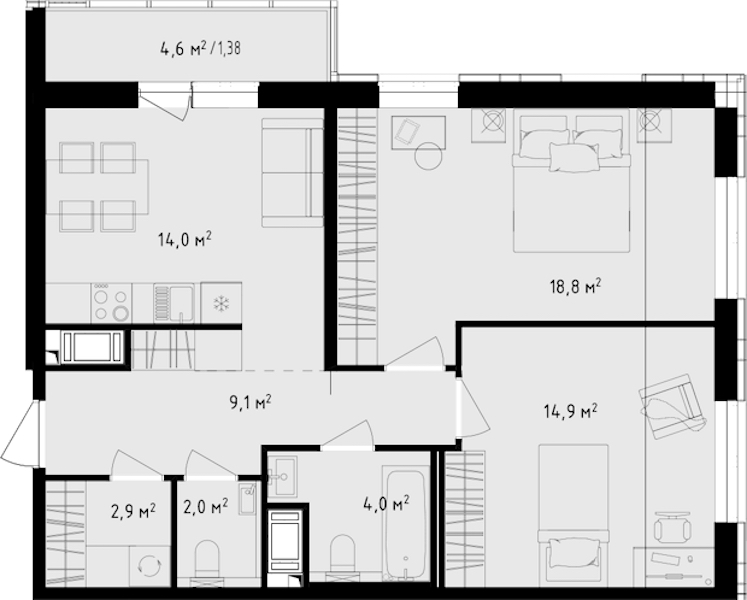- Площадь67,08 м2