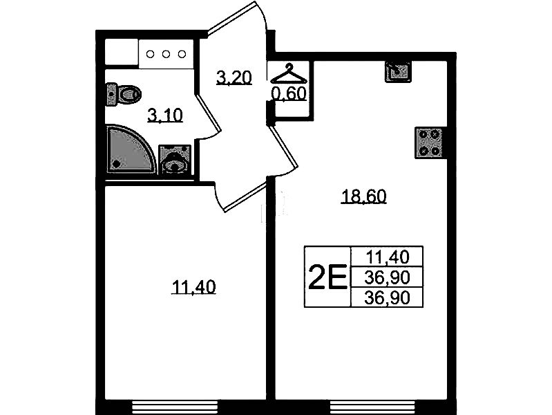 Однокомнатная квартира на 23-ем этаже 36,9 кв.м