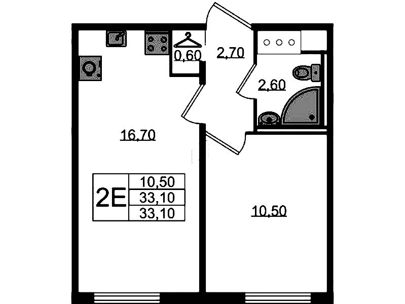 Однокомнатная квартира на 25-ом этаже 33,1 кв.м