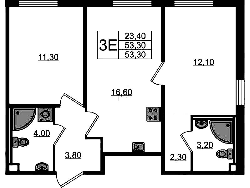 Двухкомнатная квартира на 25-ом этаже 53,3 кв.м