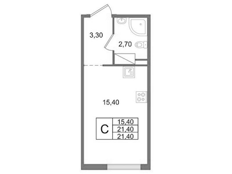 Квартира-студия на 12-ом этаже 21,4 кв.м