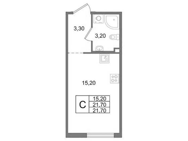 Квартира-студия на 2-ом этаже 21,7 кв.м